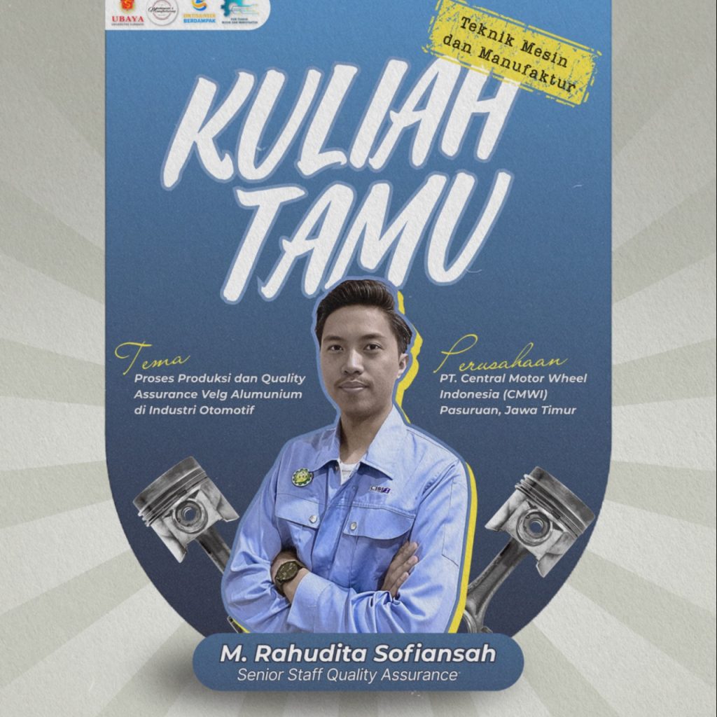 Teknik Mesin & Manufaktur UBAYA mengadakan Kuliah Tamu lagi. Kali ini Kuliah tamu akan narasumbernya adalah Bapak M. Rahudita Sofiansah, Senior Staff Quality Assurance PT. Central Motor Wheel Indonesia (CMWI) 🎉